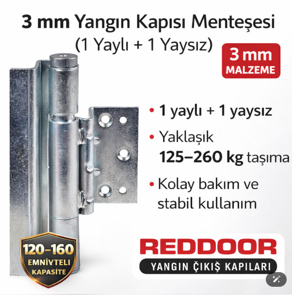 Yangın kapısı menteşesi, kapının ağırlığını taşıyan ve kapının gün boyu sorunsuz açılıp kapanmasını sağlayan temel parçadır.